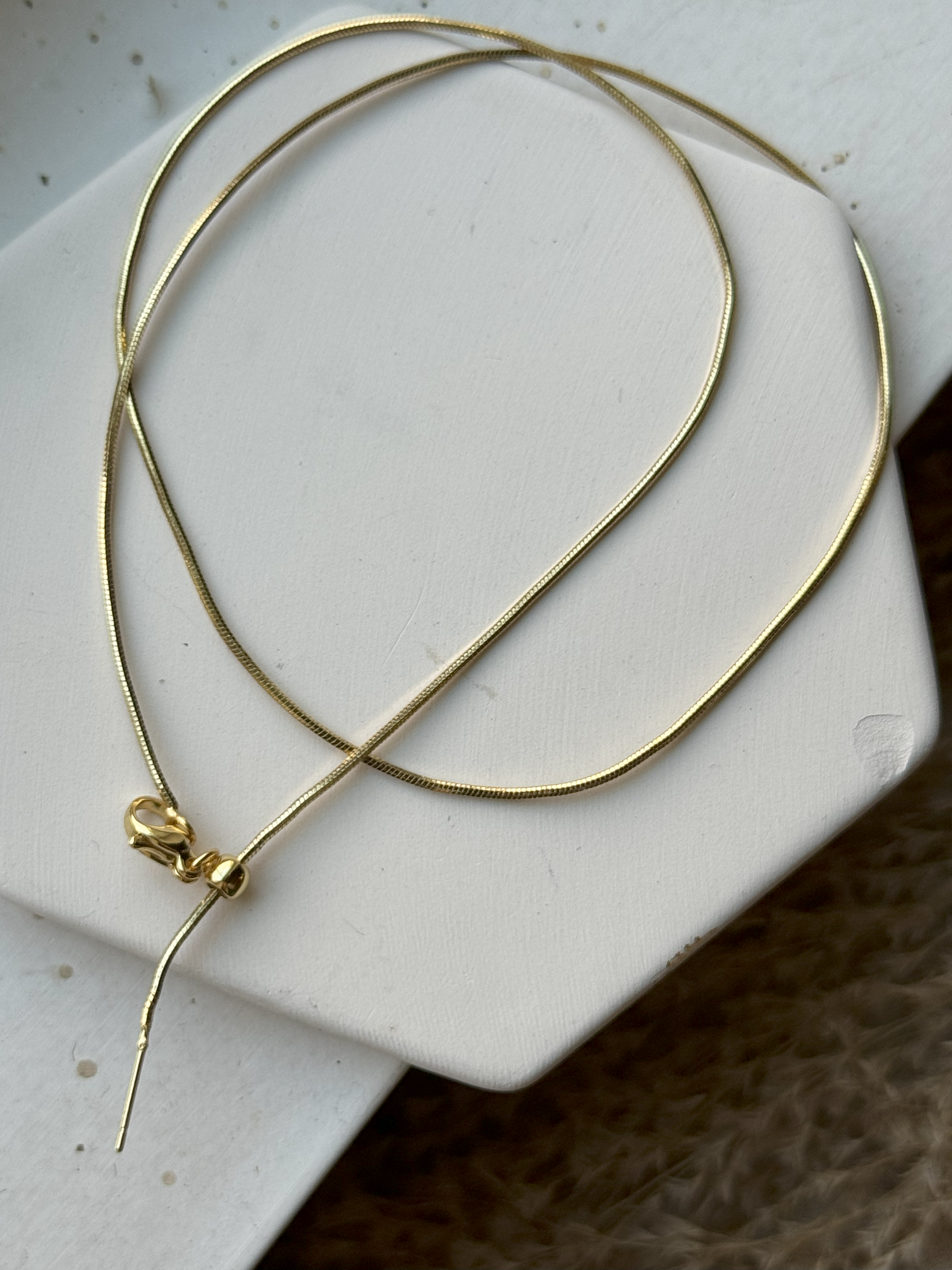 Our thin snake chain has an adjustable closure that makes it simple to add and remove charms and customize the length for a versatile look!