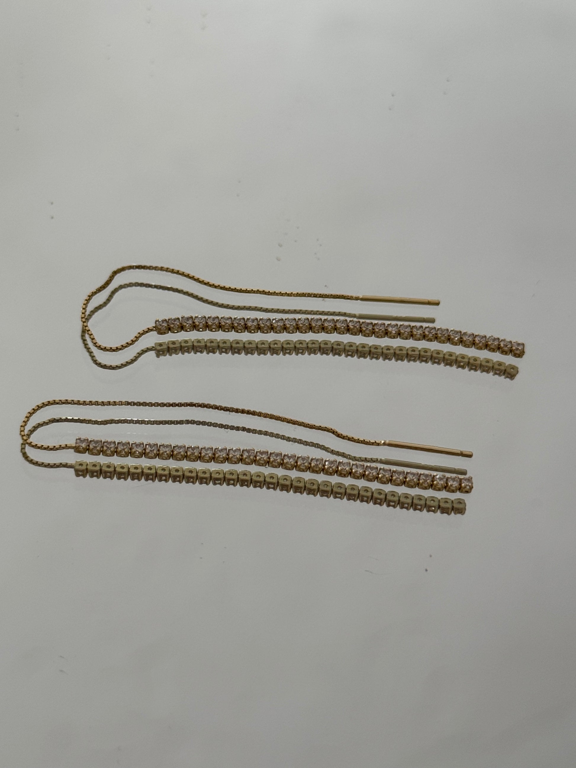 Delicate threaded earrings, featuring a dainty line of crystals to give you a subtle touch of sparkle.