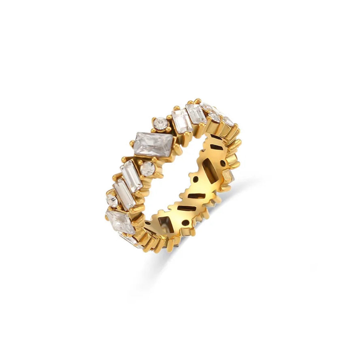 Elevate your look with a touch of vintage charm with our Retro band. Featuring a geometric design, this stunning eternity band sparkles from every angle.